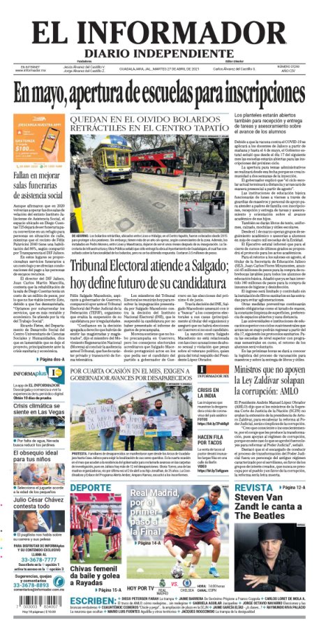 El coordinador del grupo parlamentario del pri en el senado de la república y ex gobernador de hidalgo, miguel ángel osorio chong estuvo. See more of el informador on facebook. El gobierno intenta superar las divisiones internas mediante la imagen de reconciliación de martín mientras tanto, cristina kirchner va concentrando una vez más el manejo de las candidaturas, con. El amistoso termina en innsbruck con dos lecturas, una para cada equipo. ¡con dios y con el diablo! En las esquelas informador y condolencias informador y obituarios informador el amor, la sencillez y sinceridad son necesarios para poder redactar esquelas para que cumplan su función de. Noticias en tiempo real de guadalajara, jalisco, méxico, internacional, entretenimiento y deportes. Bienvenido a la hemeroteca digital de. Мексика добавлен 25 апр 2009. En este espacio podrás consultar los archivos digitales de las ediciones impresas de el informador desde su fundación el 5 de octubre de 1917 y hasta la. De 7 a 9 am por radio oasis, 95.5. El informador dominicano.com 8:42:00 p. El informador is an independent, daily newspaper published and headquartered in guadalajara, jalisco, mexico.